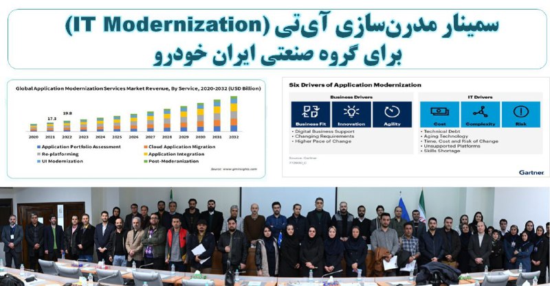 برگزاری سمینار مدرن‌سازی آی‌تی (IT Modernization) برای تعدادی از مدیران و کارشناسان شرکت‌های گروه ایارن خودرو در تابستان 1404.